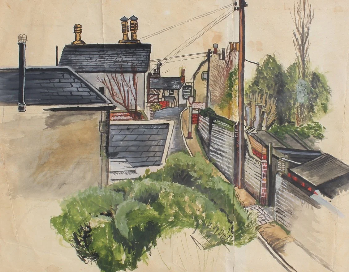 This is a street in Shoreham that ran due south from my old grammar school. It was painted in 1955 around the same time I executed the school picture. This road remains virtually unchanged to the present day.